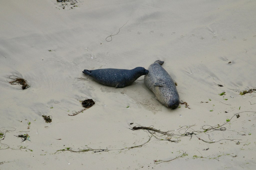 In the midst of these final few encounters I was also lucky enough to see Risso’s dolphins in Brei Wick (where bull #018 was seen a few days later), and a huge nursery pod of Atlantic white sided dolphins in Vassa Voe (footage by Hugh Harrop). I continued with the seal monitoring until the day I left, amazed at how the harbour seal pups had grown substantially in size in just a few weeks.
